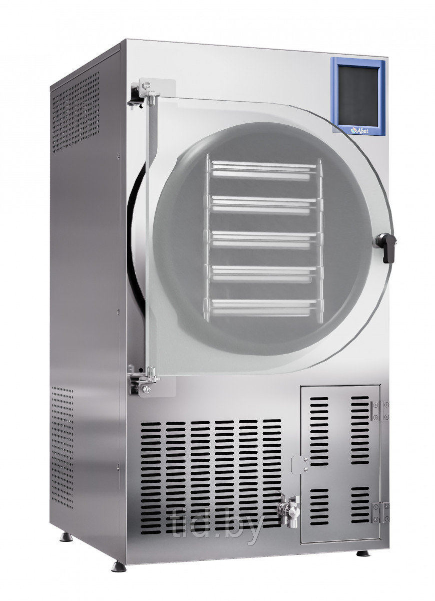 - прозрачная дверь лиофильной камеры закрывается с помощью поворотной ручки в две ступени: сначала прикрывается, а затем прижимается к уплотнению